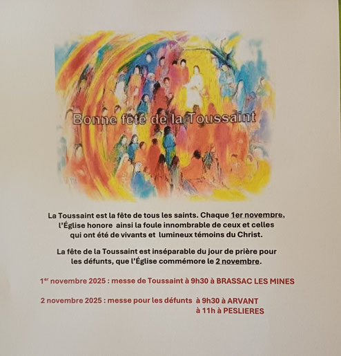 Ce que nous fêtons à Toussaint, c’est l’espérance de cette vie que Dieu ressuscite. Que cette espérance d’une vie nouvelle puisse nous consoler et nous inviter à agir pour ce que le Christ a toujours voulu pour les hommes : la paix et la justice.